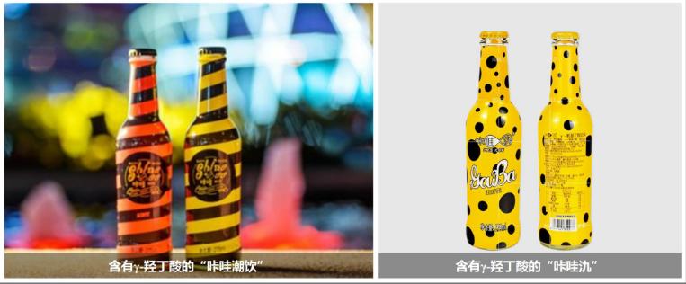 外观特点:形态与瓶装饮料类似,外包装色彩鲜艳。主要成分:制作过程中掺入的γ-丁内酯及其水解产生的γ-羟丁酸。