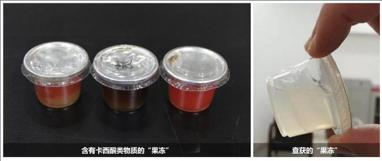 外观特点:形态与正常的果冻类似,外包装简陋,没有注明成分、制造商等信息。主要成分:制作过程中掺入的卡西酮类及苯丙胺类新精神活性物质。