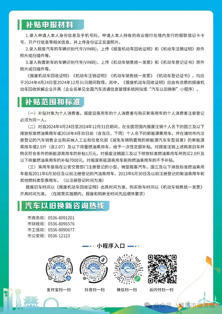 供稿|潍坊市商务局原标题:《图解 | 潍坊市汽车以旧换新补贴》