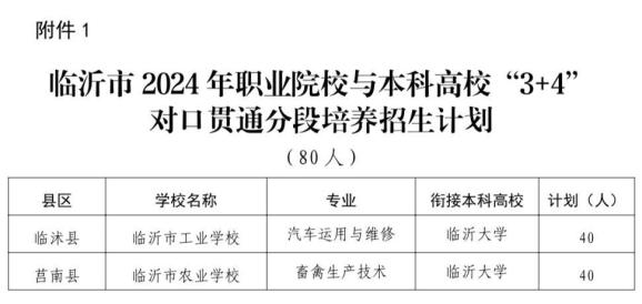 1.临沂市2024年职业院校与本科高校“3+4”对口贯通分段培养招生计划