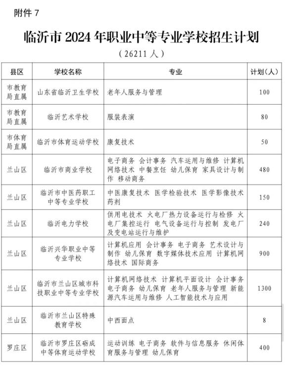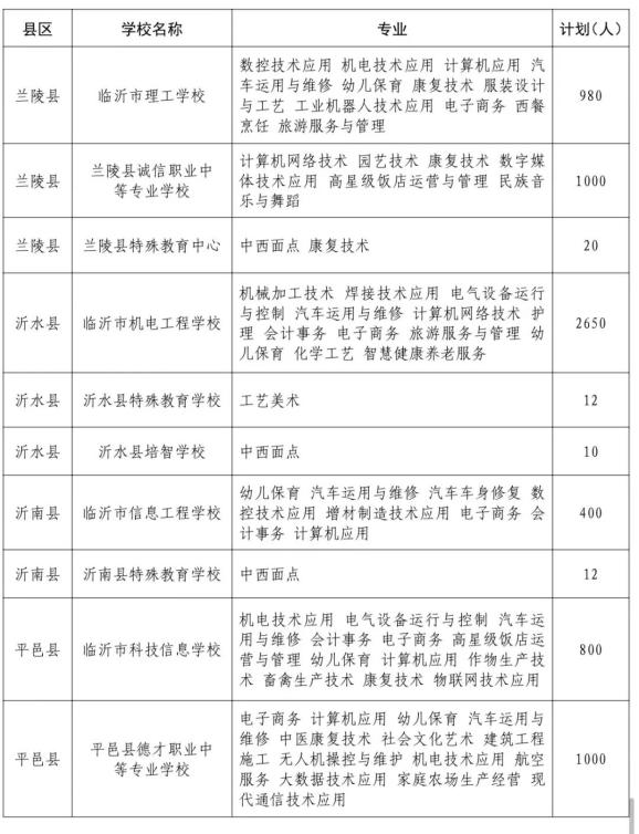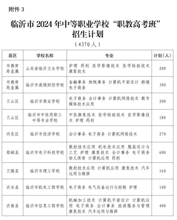 3.临沂市2024年中等职业学校“职教高考班”招生计划