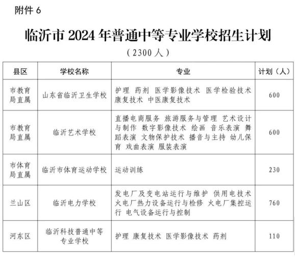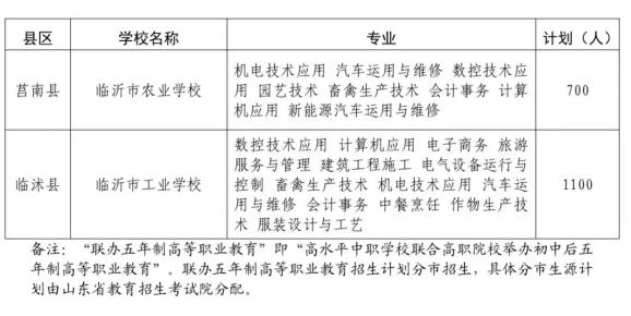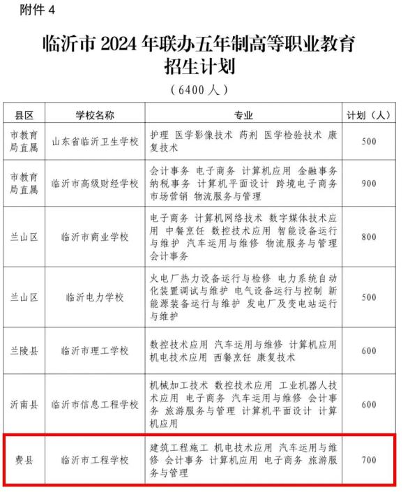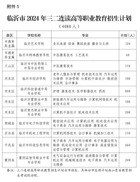 4.临沂市2024年联办五年制高等职业教育招生计划