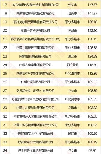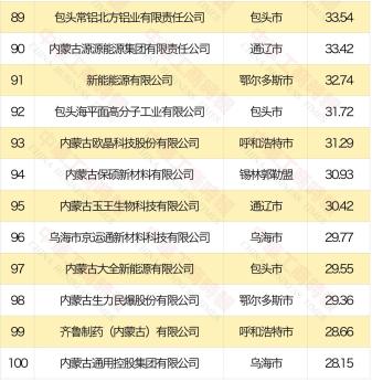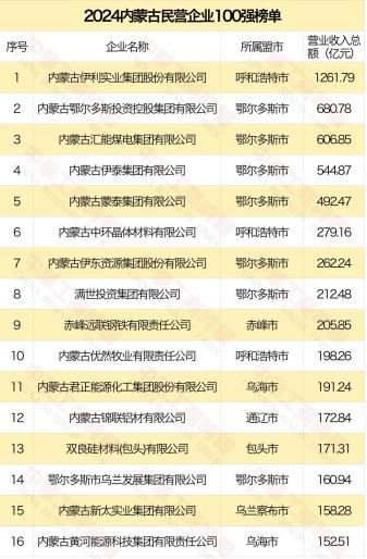 2024内蒙古民营企业100强榜单