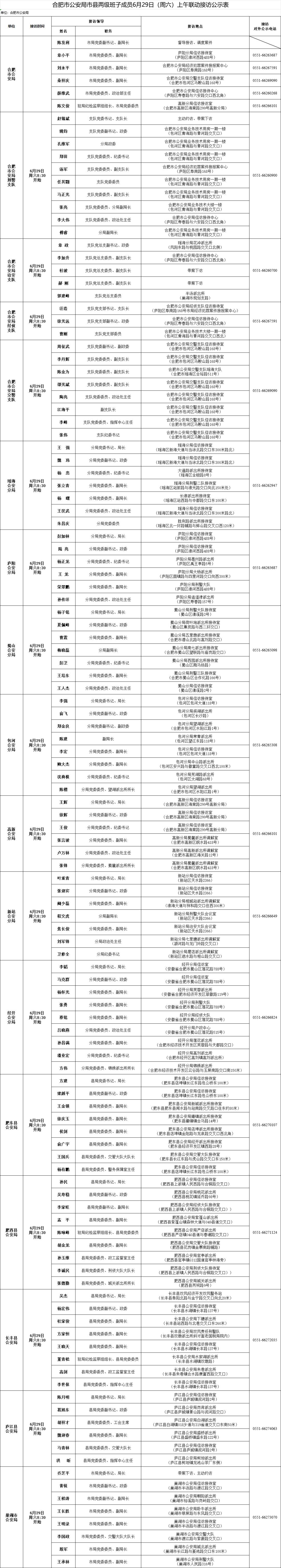 详见《合肥市公安局市县两级班子成员6月29日(周六)上午联动接访公示表》。