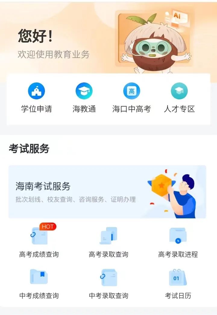 第二步在教育专区页面,点击“海南考试服务”区域,进入考试服务页面。