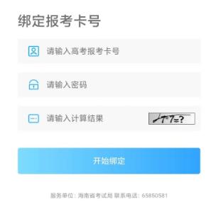 第五步若当前海易办账号没有绑定高考报考卡号,则系统将跳转到绑定报考卡号页面。输入报考卡号、密码和验证码进行绑定后即可登录。