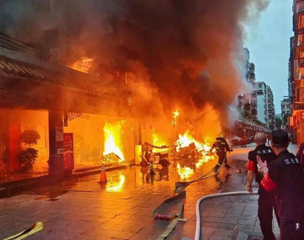 广东广州:25辆车、4间店铺门面被烧5月10日,广东广州室外电动自行车起火,34名消防员赶赴处置,经过紧张扑救,明火于6时04分扑灭。据悉,火灾原因为室外电动自行车自燃并引燃商铺广告牌,火灾波及旁边停放的电动自行车和4间店铺门面,共烧毁25辆电动自行车。