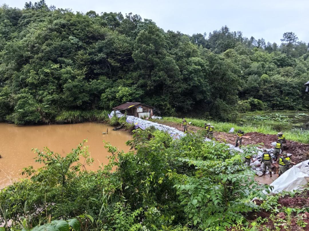 汪婷婷立即上报,同时安排人员在点位值守,等待抢险队伍到达。金字牌镇党委政府接报后,第一时间安排镇干部赶赴现场,同时联系县农水部门制定专业抢险方案。14时,镇村干部、辖区村民及县人武部、经开区、林业局、农业农村局、城管执法局、柏溪乡、高速项目部志愿者等两百余人陆续到达险情现场,利用填沙袋加高坝体、降低泄洪道引流的方式开展抢险工作。23日2时左右,完成险情处置,无人员伤亡。