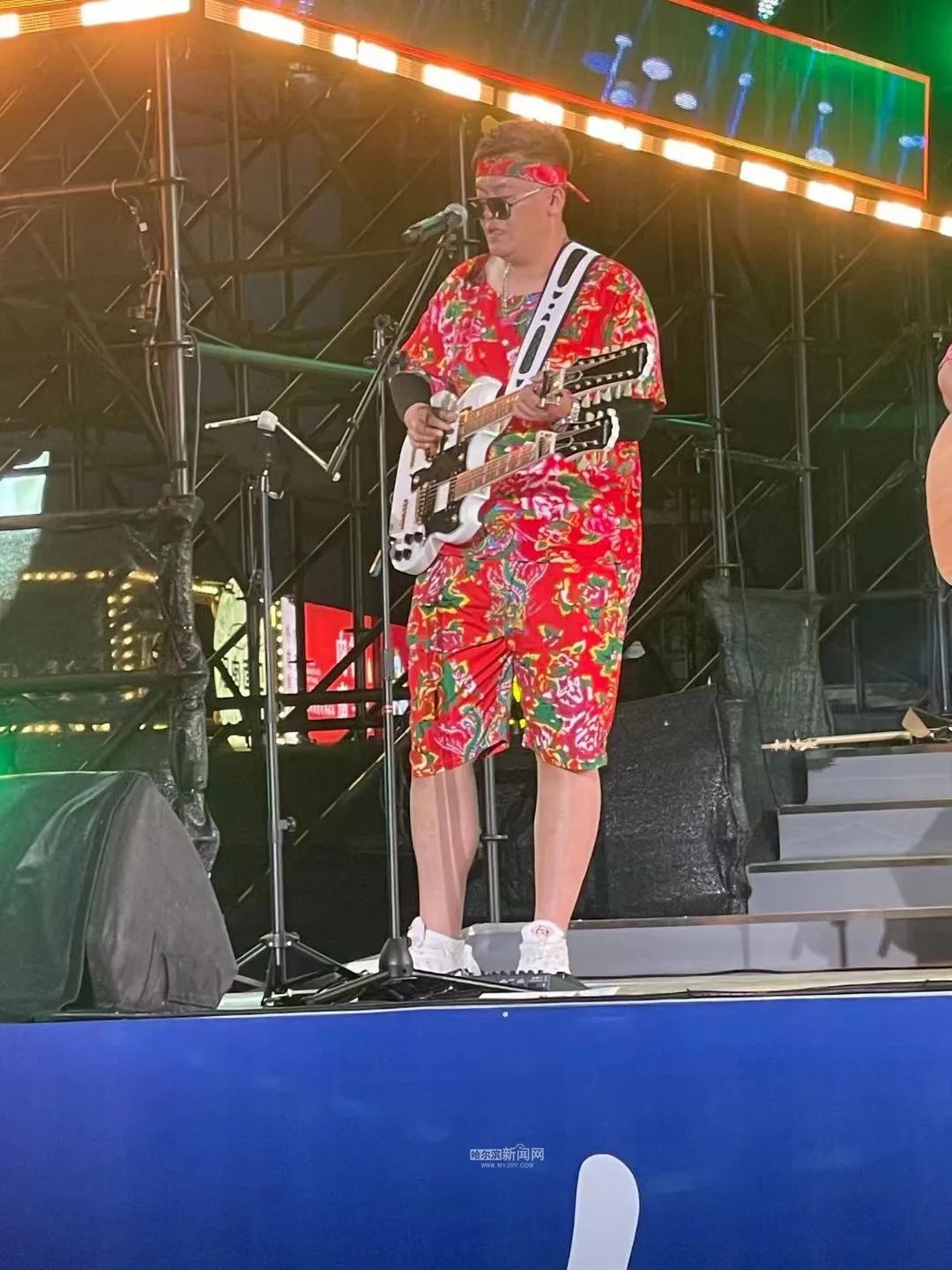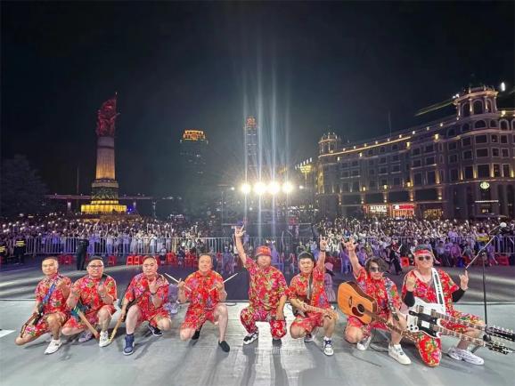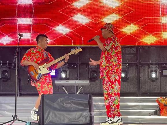 6月27日晚,“市民音乐嘉年华”的舞台迎来了顺时针乐队专场演出。舞台上的他们身着具有浓烈东北色彩的红色大花短T、短裤,以一曲《顺时针的歌》揭开了当晚演出的序幕。《不再犹豫》《真的爱你》《可能》《后来》《失恋》《无地自容》《不见不散》以及《光辉岁月+只要你过的比我好+红旗飘飘》《活着+唱支山歌给党听+万泉河水+军港之夜+我的祖国》歌曲联唱,多首时代流行金曲,释放出复古摩登的信号。“我怕我没有机会,跟你说一声再见……”随着顺时针乐队演唱的《再见》响起,引发全场大合唱,观众们不由自主地随着乐声拍手,高举手机边录边唱,闪烁的灯光、挥动的双手,此刻,松花江畔乐声与欢呼声交织,构成了冰城夏日里的最美画面。