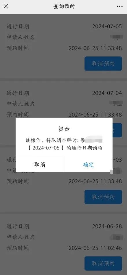 如临时改变出行,需在通行日当天24时前申请取消,超期未取消的,视为已使用,并计入预约天数。