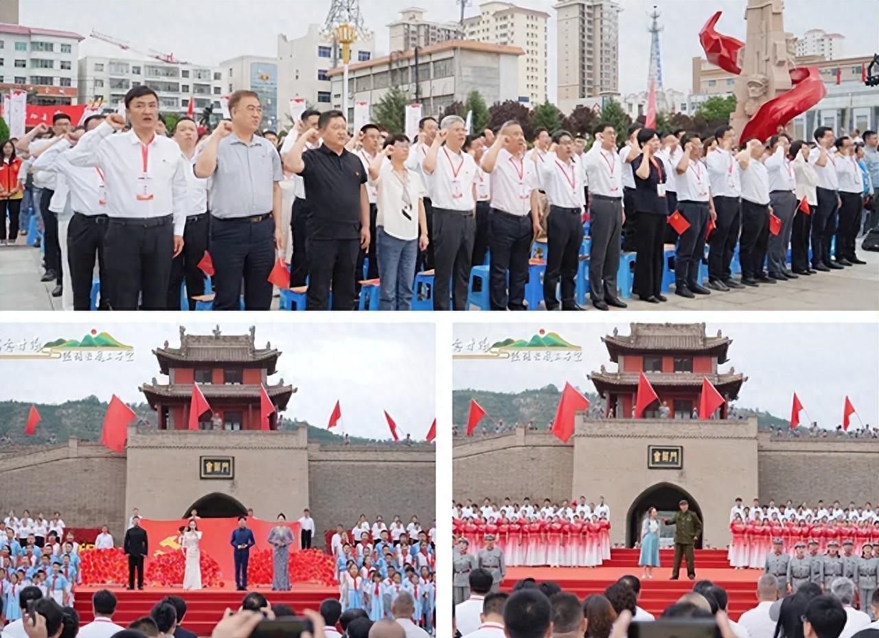 七月的会宁,红色是最亮眼的颜色。7月1日上午,会宁县城,祖厉河畔,红军会宁会师旧址红旗招展,会师楼、三军会师纪念塔庄严耸立。为庆祝中国共产党成立103周年、纪念中国工农红军长征出发90周年,由甘肃省文化和旅游厅、甘肃省文学艺术界联合会、白银市人民政府联合主办,中共白银市委宣传部、白银市文化广电和旅游局、白银市文学艺术界联合会、会宁县人民政府共同承办的诗意甘肃·丝路长风三千里——薪火相传·会宁诗会在红军会宁会师旧址成功举行。省市县有关部门领导、有关高校、省直文化艺术单位、市州文旅部门负责同志,各地党建观摩团队和会宁当地学校师生、干部群众等1.2万余人现场观看演出,线上直播观看量达761.5万人次。