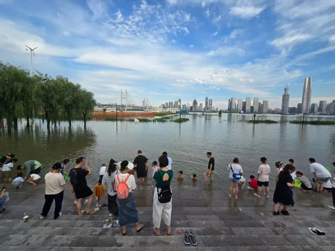这几天是“五口之家”第一次经历汛情考验。6月下旬,武汉进入“大雨暴雨大暴雨”模式。最开始,这个五口之家也和所有在江滩亲水平台戏水的人一样,享受着脚踝处波浪的轻抚,一家人手牵手,快乐地摇摇晃晃。