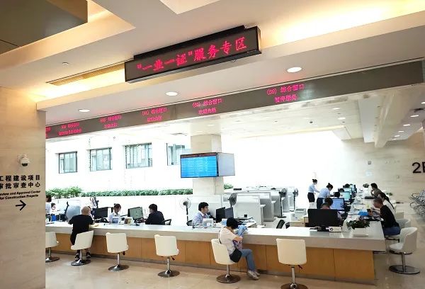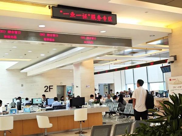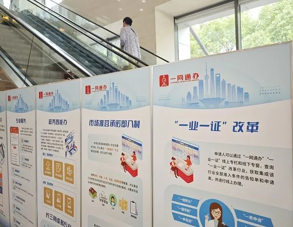 浦东新区政务服务中心,“一业一证”服务专区。最突出