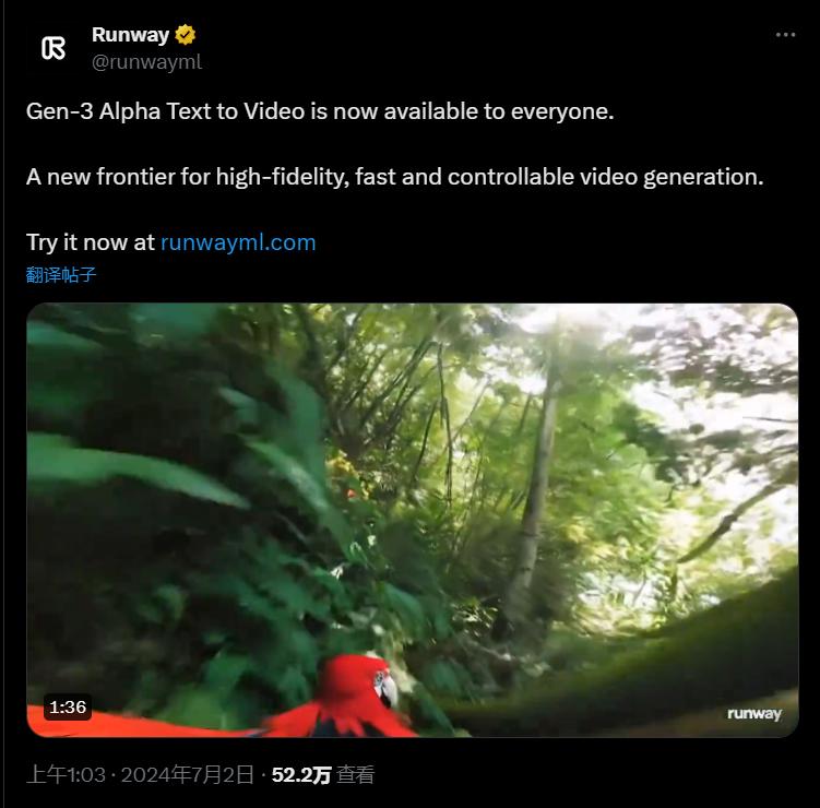 这次 Runway3 的全面开放,才算是把大家的注意力,从可灵那边拉回来了一点。