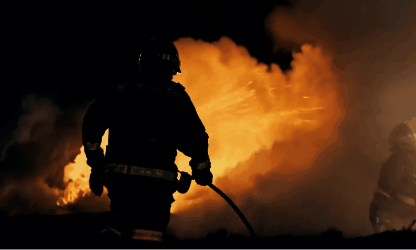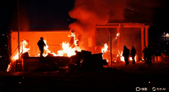 既然没分出胜负,那咱们再比一轮,这次给的关键句是:消防员在火场灭火的戏剧感。到这局, Runway3 的优势就特别明显了。人物剪影的镜头处理,和橘色的调色,一看就让人燃起来了。