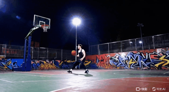 到了可灵 AI 这,画面更诡异了。篮球直接原地影分身,人虚空长出第三只手。