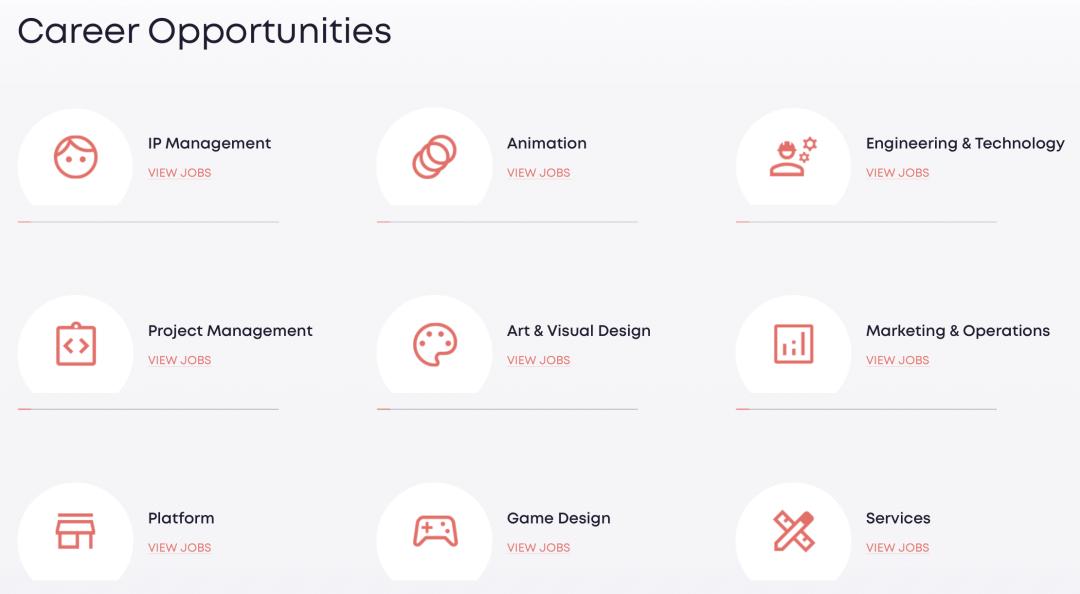 Infold Games招聘类目,图源Infold Games官网实际上,在Infold Games正式对外亮相前,叠纸游戏的全球化发行网络就已经初露锋芒。