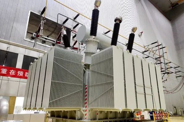 (6)SSP-H-270000/500三相组合式强油水冷发电机变压器采用了一种三相组合变压器共用一组水冷却器的技术,提出了无需油箱铜屏蔽的漏磁控制技术。与常规三相一体变压器相比,该产品可分相运输,解决了运输困难的问题。产品占地面积小,经济效益高,适应大中型水电站需求,具有广阔的市场应用前景。