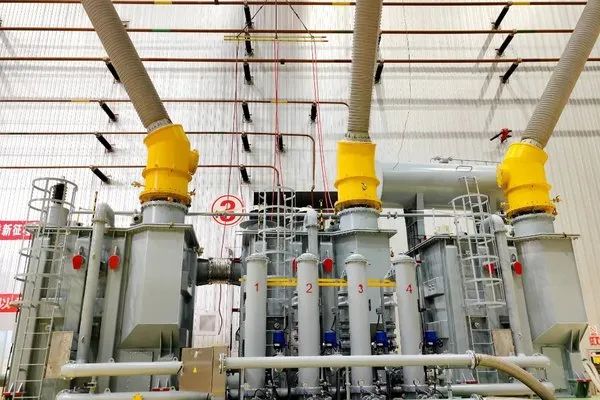 (1)SWZ22-RL-50000/110-NX1天然酯绝缘油立体卷铁心变压器将立体卷铁心设计结构与天然酯绝缘油环保技术相结合,实现了三相磁路平衡,避免了三次谐波的产生;构建了天然酯绝缘油作为绝缘介质、Nomex耐高温绝缘材料进行线圈端部绝缘的局部混合绝缘系统,提升了变压器的耐热等级。相比于传统叠铁心变压器,产品空载损耗降低20%,超出一级能效标准值5%;铁心用量减少19%,占地面积减小了约20%,助力了企业降本增效。