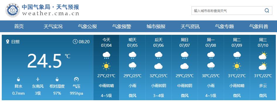 中到大雨、局部暴雨!日照最新雨情和天气预报→