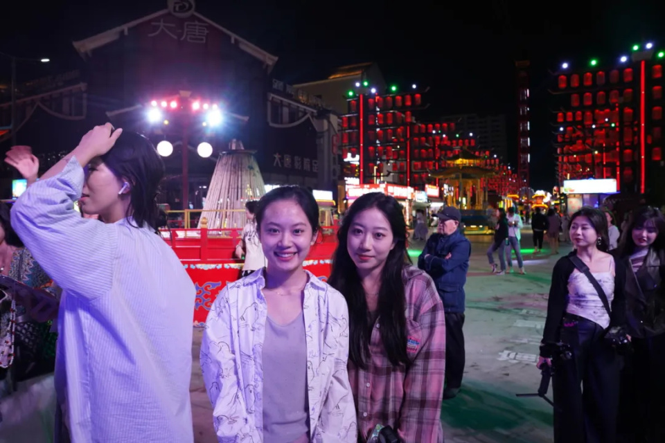 灯火璀璨的街道,独特的行为艺术表演,热情似火的篝火舞台狂欢,都是拍照拍Vlog的绝佳地点,一进入东北不夜城,随处都可以看见同学们打卡拍照的身影,他们带着青春的朝气,探寻东北不夜城频频出圈的秘密。