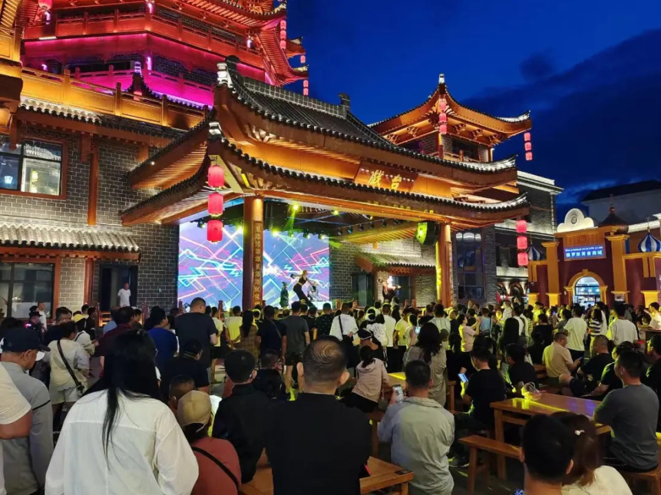 北国山城通化,烟雨之下,夏天舒爽的晚风吹开乌云,龙兴里文旅小镇的精彩拉开帷幕,流光溢彩的小镇里,青春的气息扑面而来。