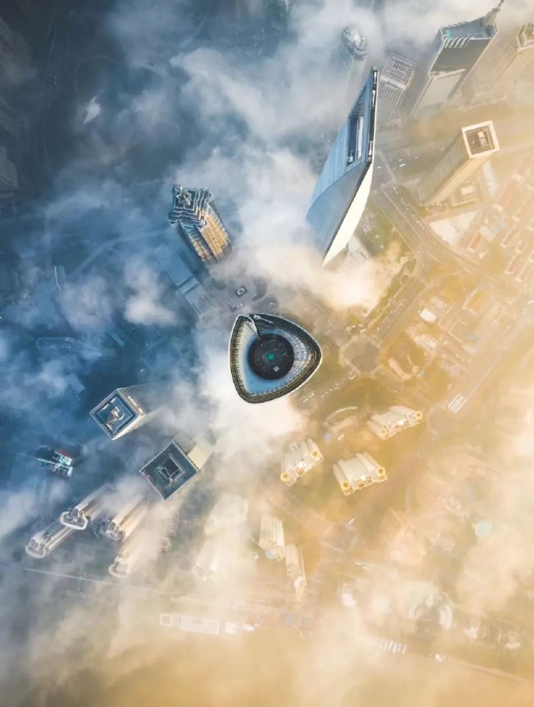 有些日子,陆家嘴至高的三座建筑,上海中心大厦、环球金融中心、金茂大厦的高层都隐没在云里,尤其是上海中心大厦较高的那些楼层,窗外可能是白茫茫的云雾,也可能是云层之上的澄澈空间。这些超高层的建筑,如造梦一般,造就了许多别样的景致,给折叠的上海释放出更多的想象力和神秘属性。