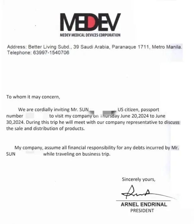 7月4日,红星新闻记者联系菲律宾MEDEV医疗设备公司,该公司工作人员表示,公司并没有一位名叫“李娜”的工作人员,近期也没有向任何中方企业或个人发送过邀请函。这名工作人员称,他们也注意到了这起绑架撕票案,此案与公司无任何关系,系有人冒用公司工作人员名义,制作了假冒的公司邀请函。