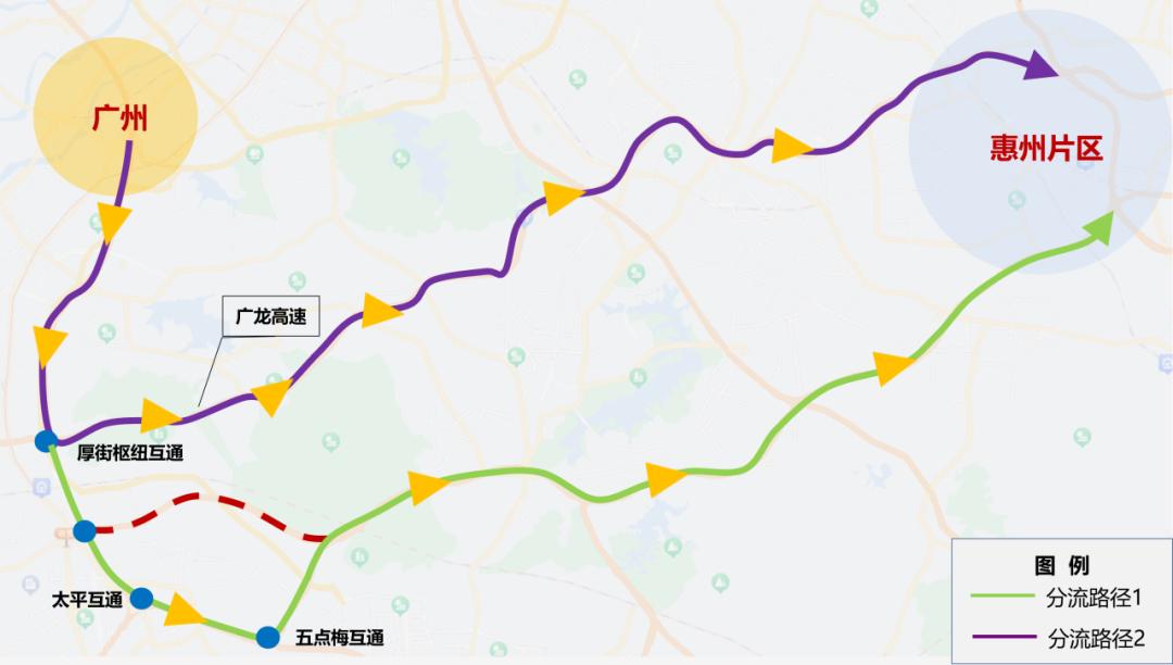 ②路径二:惠州—广龙高速—京港澳高速—太平互通。