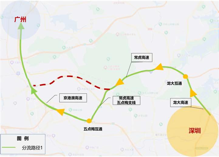 ①路径一:常虎高速—常虎高速五点梅支线—五点梅互通—京港澳高速—广州;