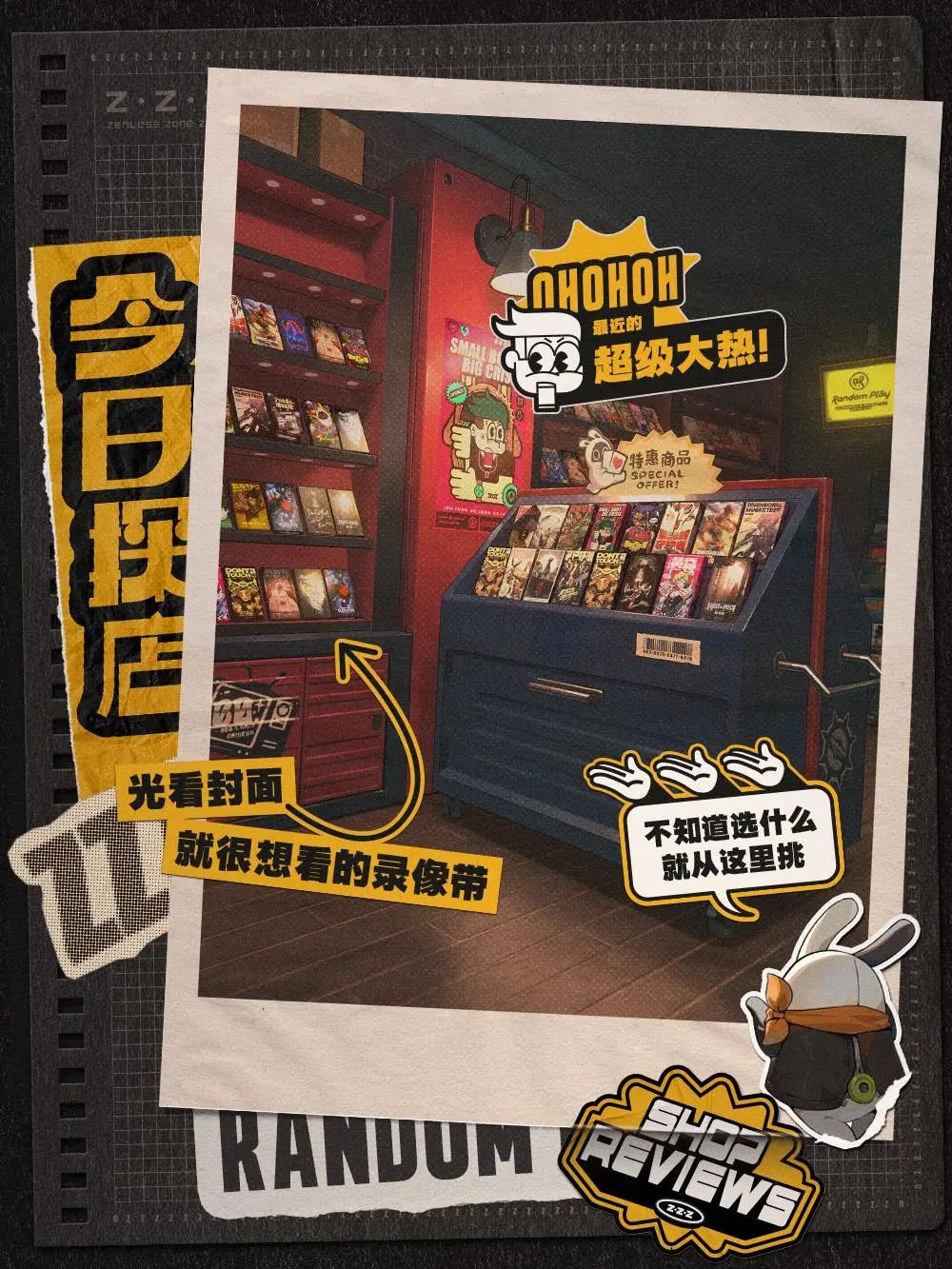 《绝区零》中,主角为了隐藏自己绳匠的身份,开了一家录像店作为基地。玩家的房间里摆放着老式VCD、录像机、录音机和满墙的录像带。作为一家正在经营的录像店,玩家需要每天更换播出的录像带。只要玩家选择的电影符合当天的新艾利都的流行趋势,就能够获得大量收益。