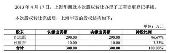 此次股权转让完成后,上海汉兴的股权结构为纪志愿持股96.67%、侯世杰持股3.33%(见图一),成都华西从上海汉兴的股东名单中退出。