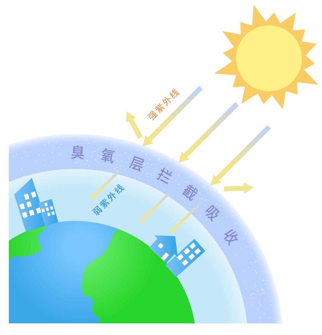 此外,大气中的臭氧(层)可吸收一部分的紫外辐射。