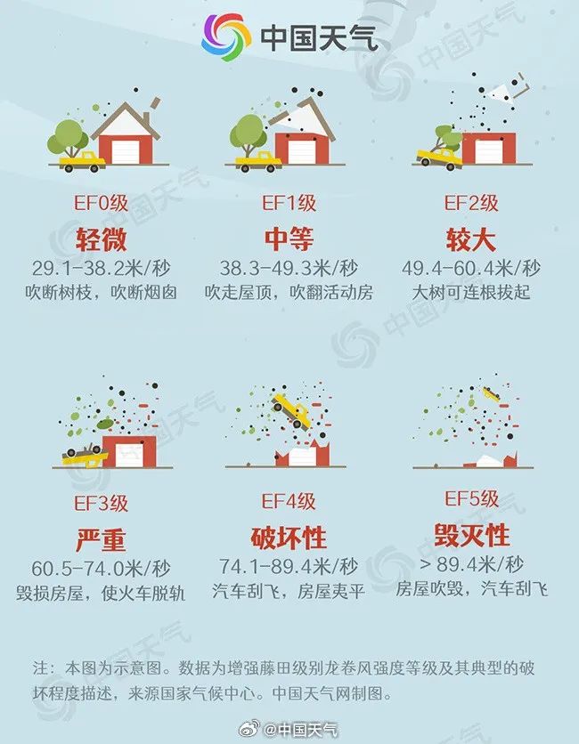 据@中国天气,龙卷风作为一种破坏力极强的强对流天气,是在强烈不稳定天气条件下产生的一种小范围的空气涡旋,中心风力可达50-150米/秒,直径一般在几米到数百米之间。