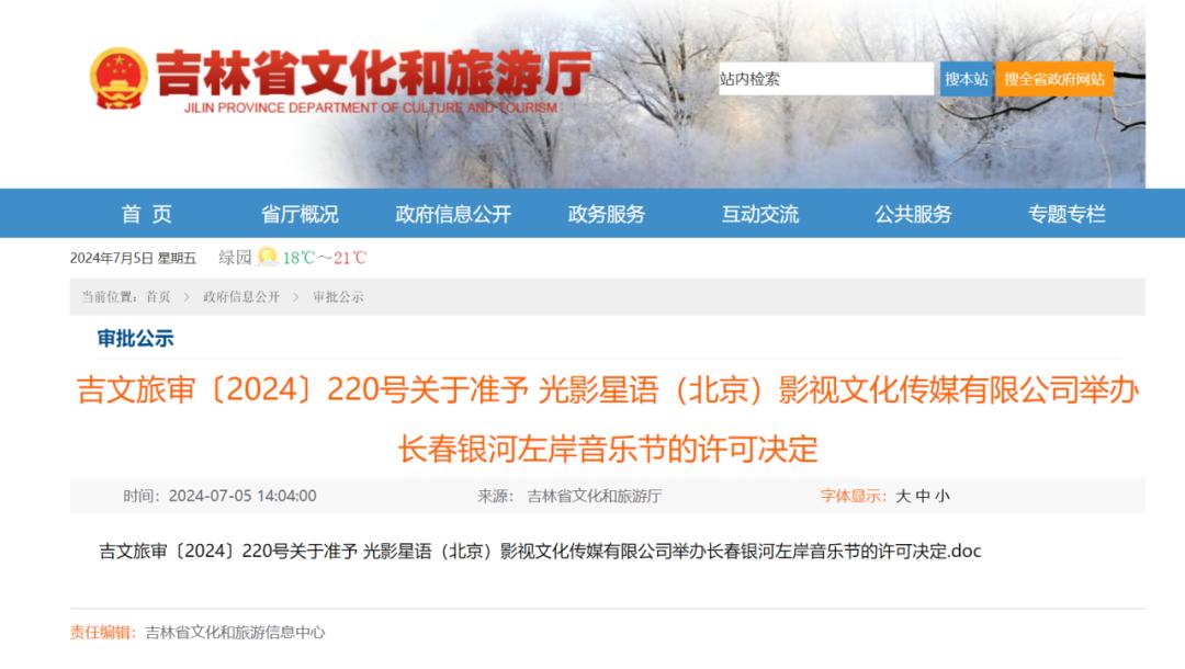 7月5日吉林省文化和旅游厅网站发布