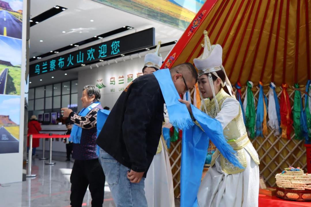 (察右后旗及尔小站·原筑民宿)以文促旅,以旅彰文,察右后旗立足资源禀赋,因地制宜,给旅游业赋予了深刻的文化内涵。在南游客服务中心设立非遗集市,展示和售卖毛绣、皮雕、烫画、剪纸、察哈尔服饰、玉石雕刻、火山石雕刻等非遗文创产品,展示了塔布嘎、蒙古包制作技艺、展演了马头琴、呼麦、长调、民族舞蹈等非遗项目。精彩的文艺演出和非遗展示给旅游业赋予了新的灵魂,让八方游客都耳目一新,也为进一步擦亮乌兰察布火山名牌注入源源不断的新动力。