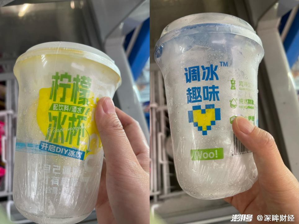 像农夫山泉推出专门的冰杯单品,便利蜂、7-11、罗森等便利店纷纷上线了带有自家LOGO的冰杯,线下饮品店如蜜雪冰城也可单点冰杯。