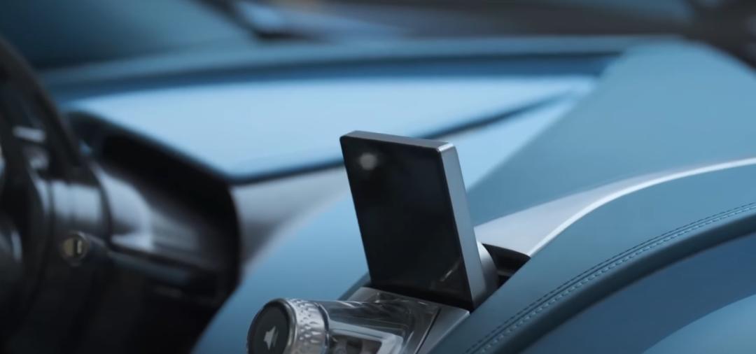 最搞笑的一点是,马特自己明明是电车出身,但是非常讨厌现在满车的大屏幕,他觉得这种设计是非常容易过时的。所以在 Tourbillon 的车里,他只放了一块这么小的伸缩屏幕用来看倒车影像和 Carplay 。就有种必要的时候才用,能不用就不用的感觉。。。