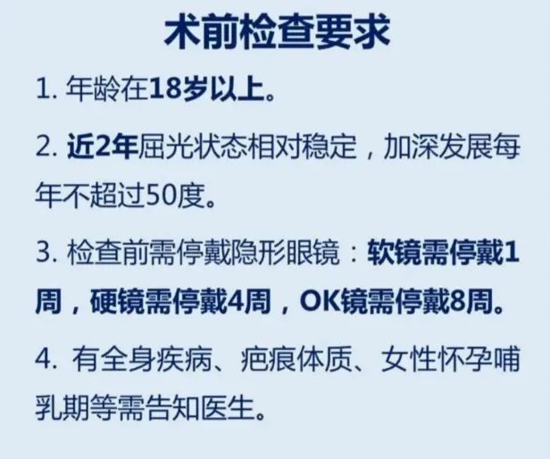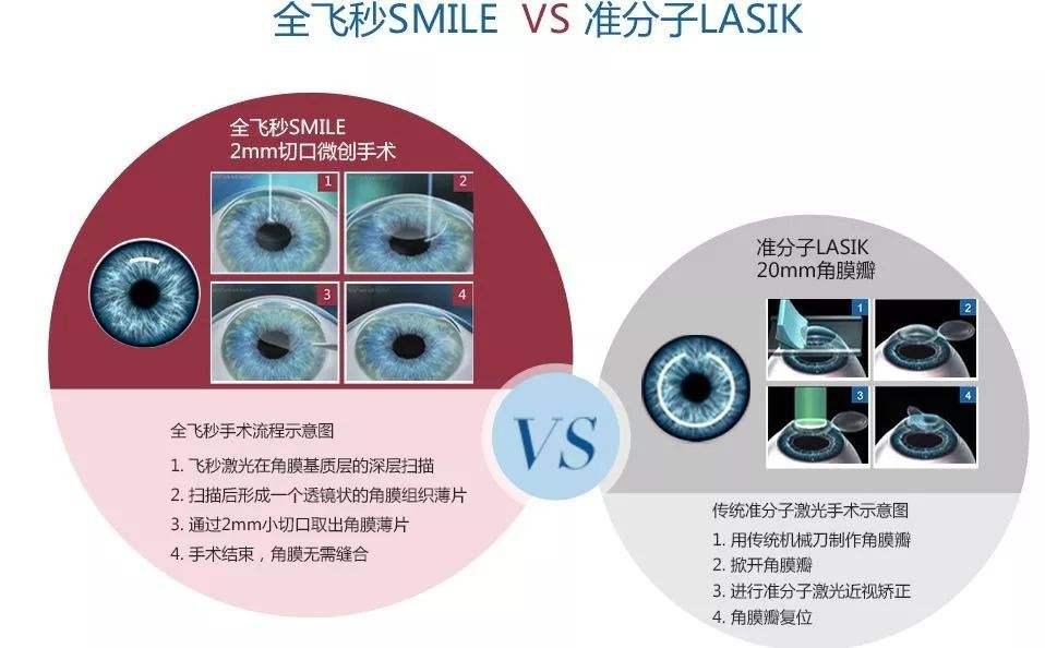 常见的近视手术方式包括准分子激光原位角膜磨镶术(LASIK)、飞秒激光小切口角膜基质透镜取出术(SMILE)等。LASIK手术通常需要角膜厚度在480微米以上,而SMILE手术一般要求角膜厚度不低于500微米。