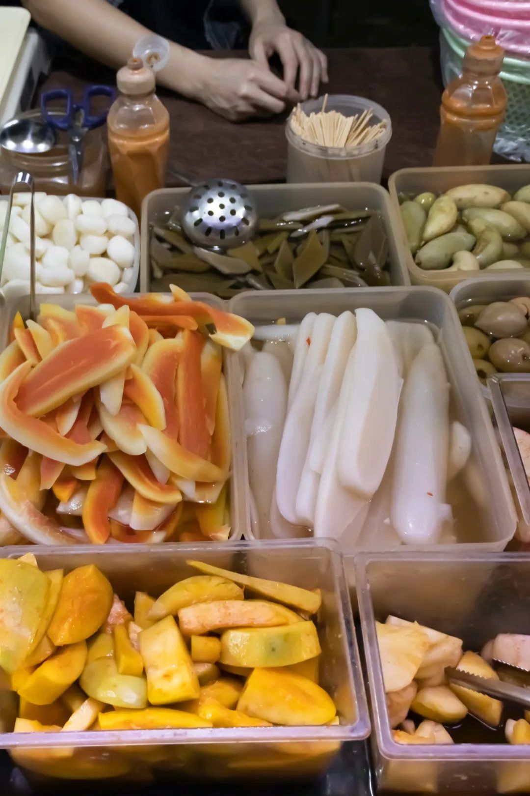 此外,就像广西水果一样,广西酸嘢也十分与时俱进、包罗万象,一些近年开始引种、改良和大面积种植的水果,像是人参果、释迦、雪莲果等,也会被酸嘢收纳,成为其庞大宇宙的一员。