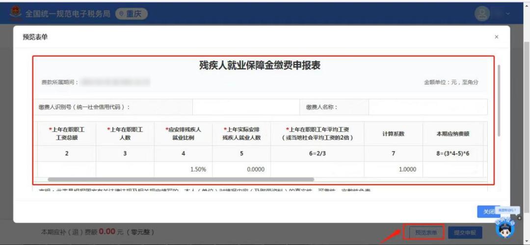 数据填写完成后,可点击【预览表单】对数据进行查看,也可直接点击【提交申报】。