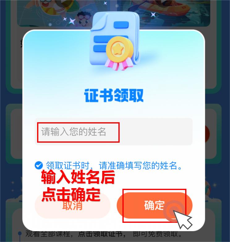 ⑤输入姓名,即可领取荣誉证书