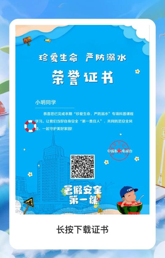 长按即可保存你的专属证书