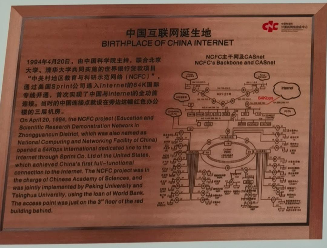 1994年4月20日,由中国科学院主持,联合北京大学、清华大学共同实施的世界银行贷款项目“中关村地区教育与科研示范网络(NCFC)”通过美国Sprint公司连入Internet的64K国际专线开通,标志着中国首次实现了与互联网的全功能连接。这一天也成为了中国互联网的诞生日。