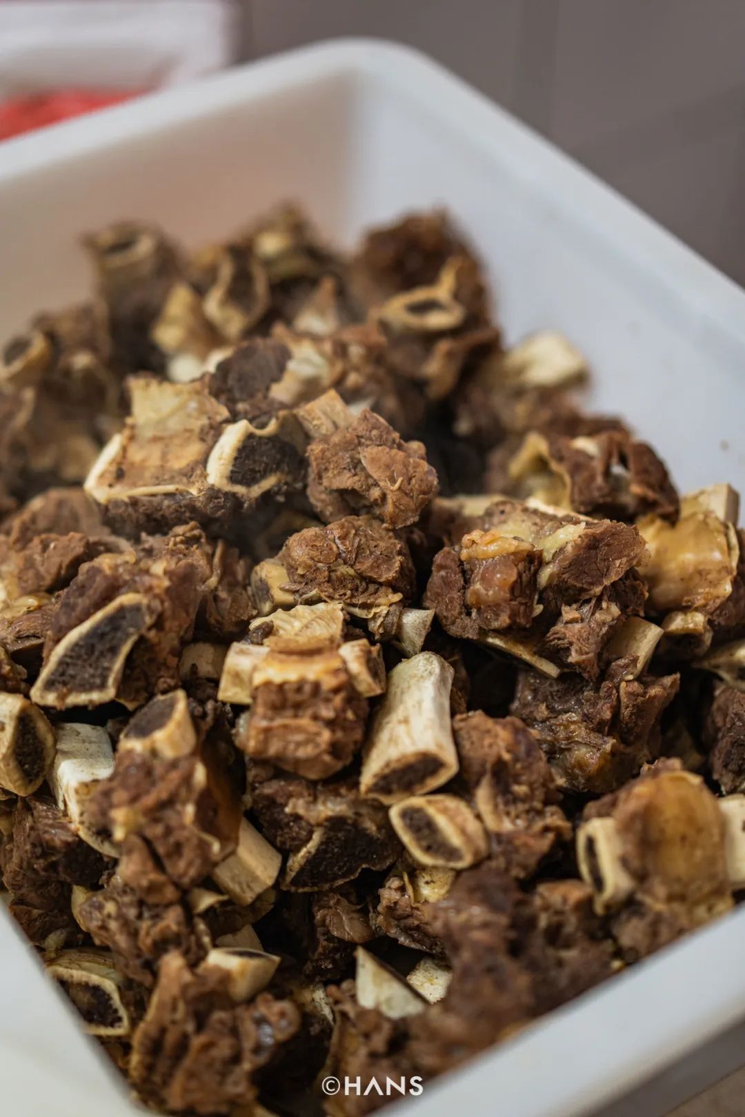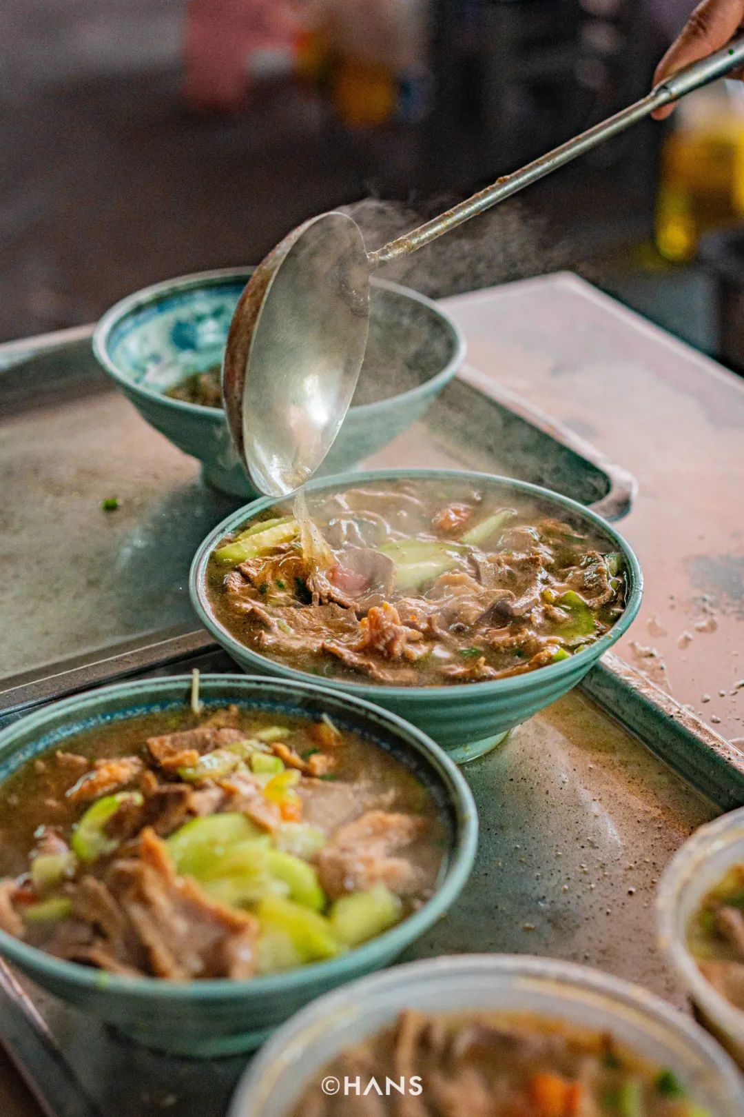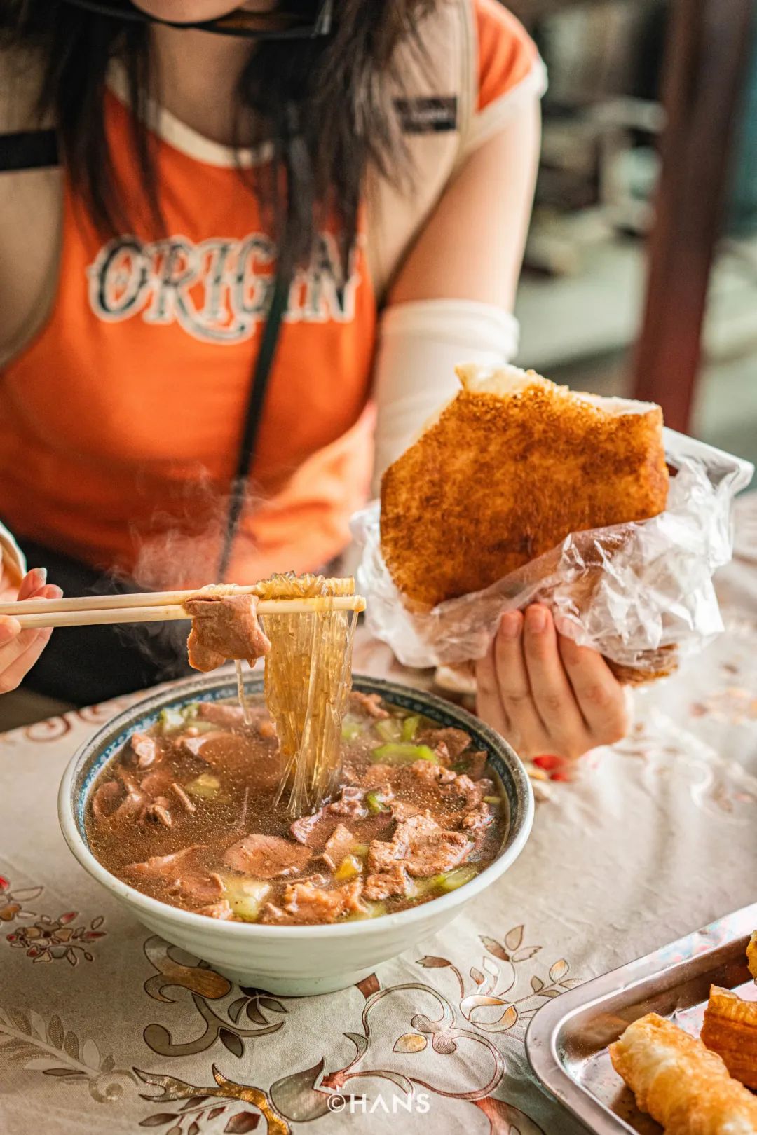 牛骨面是十多年前才流行起来的。早上八点左右,是店里生意最好的时候,牛骨面卖得最俏,到了周末,带着小孩来吃牛排面的食客占据上风。能在清早吃这么豪横的东西,就像老板说的:“我们小地方节奏没那么快,是可以坐下来嗦骨头的。”亲眼见到,哪怕是和武汉人一样边走边吃,汉川人碗里可不是好吸溜的牛肉面,而是需要耐心剔咬的牛骨头面。
