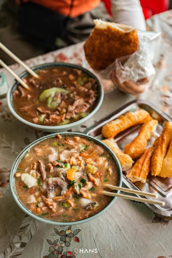 汉川城区大部分早餐店到九点基本就闲了,但是火猴山小学附近的「文生特色早点」是个例外。这家店开了三十多年,江湖地位高。后来老板收了一些徒弟,有点像武汉“小胡子烧烤”的模式,徒弟们将掺汤店开满整个汉川。热热闹闹的环境中,熟客们点单都是靠吼,“来三碗三合一”“掺碗财鱼加瘦肉”“猪肝掺汤加梗鸡蛋带走”……