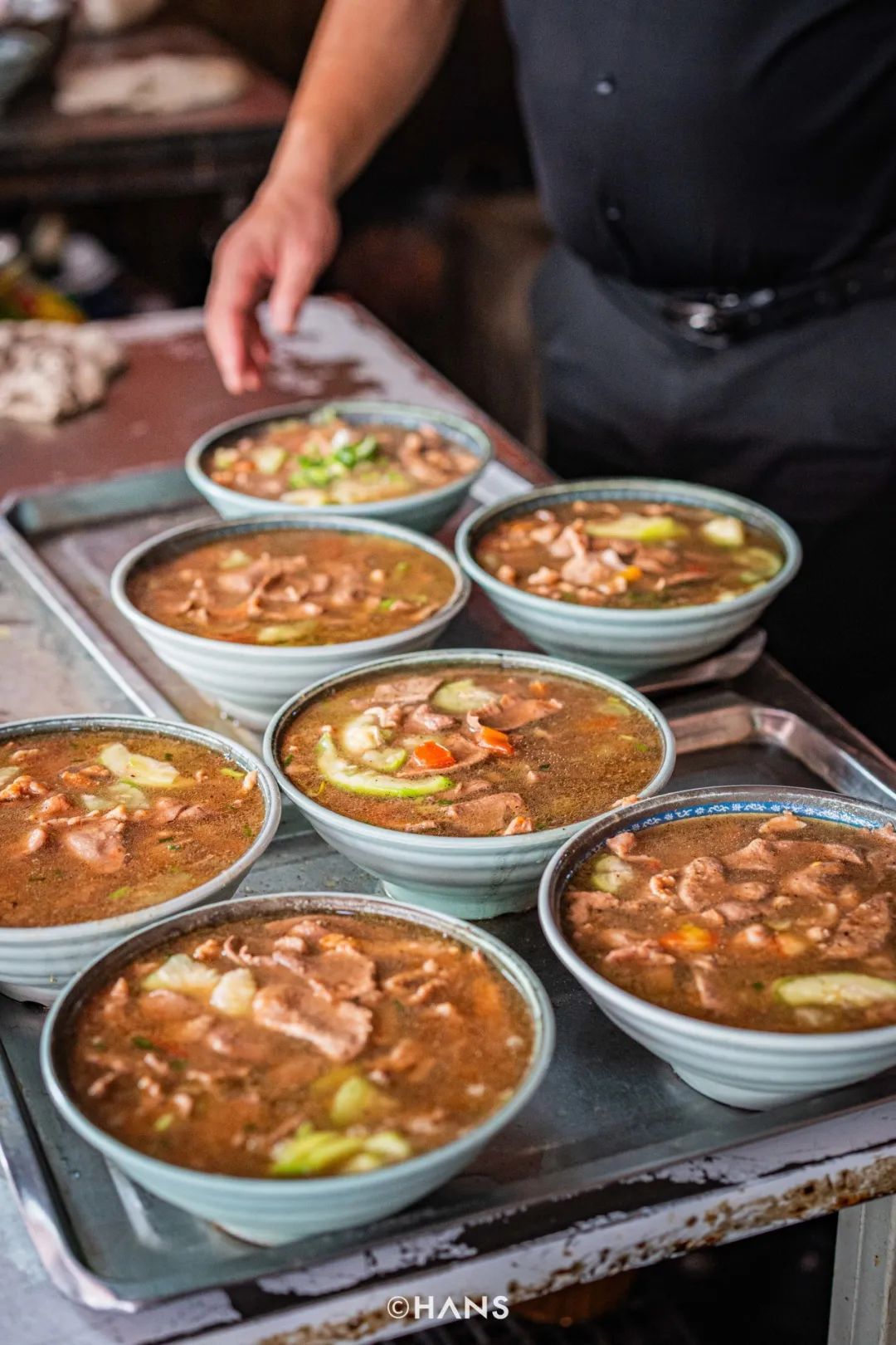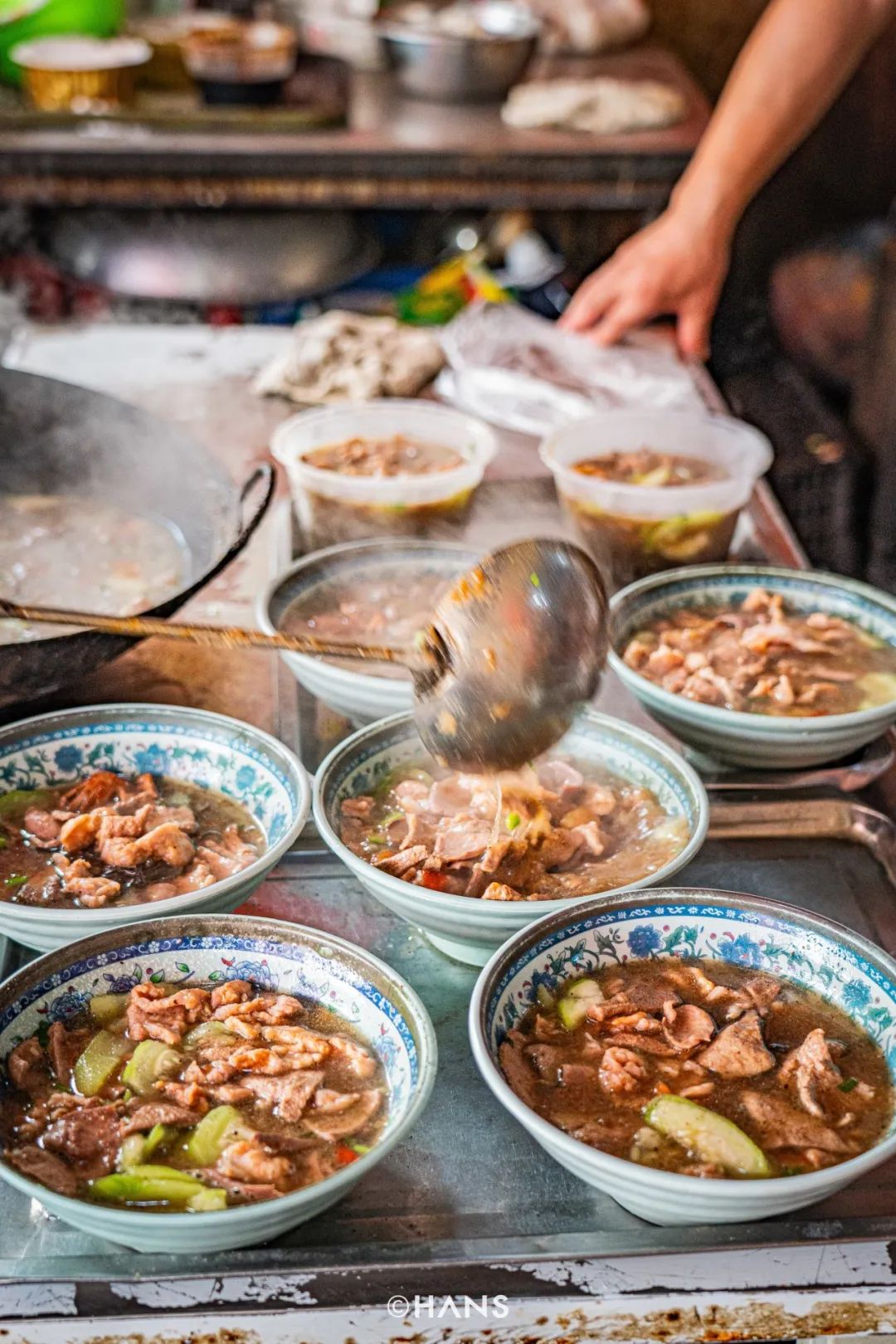 掺汤、鳝鱼面属于传统硬派过早。要充分领略汉川人过早的豪横,还要再去鳝鱼面隔壁的牛骨牛排面馆补一课。