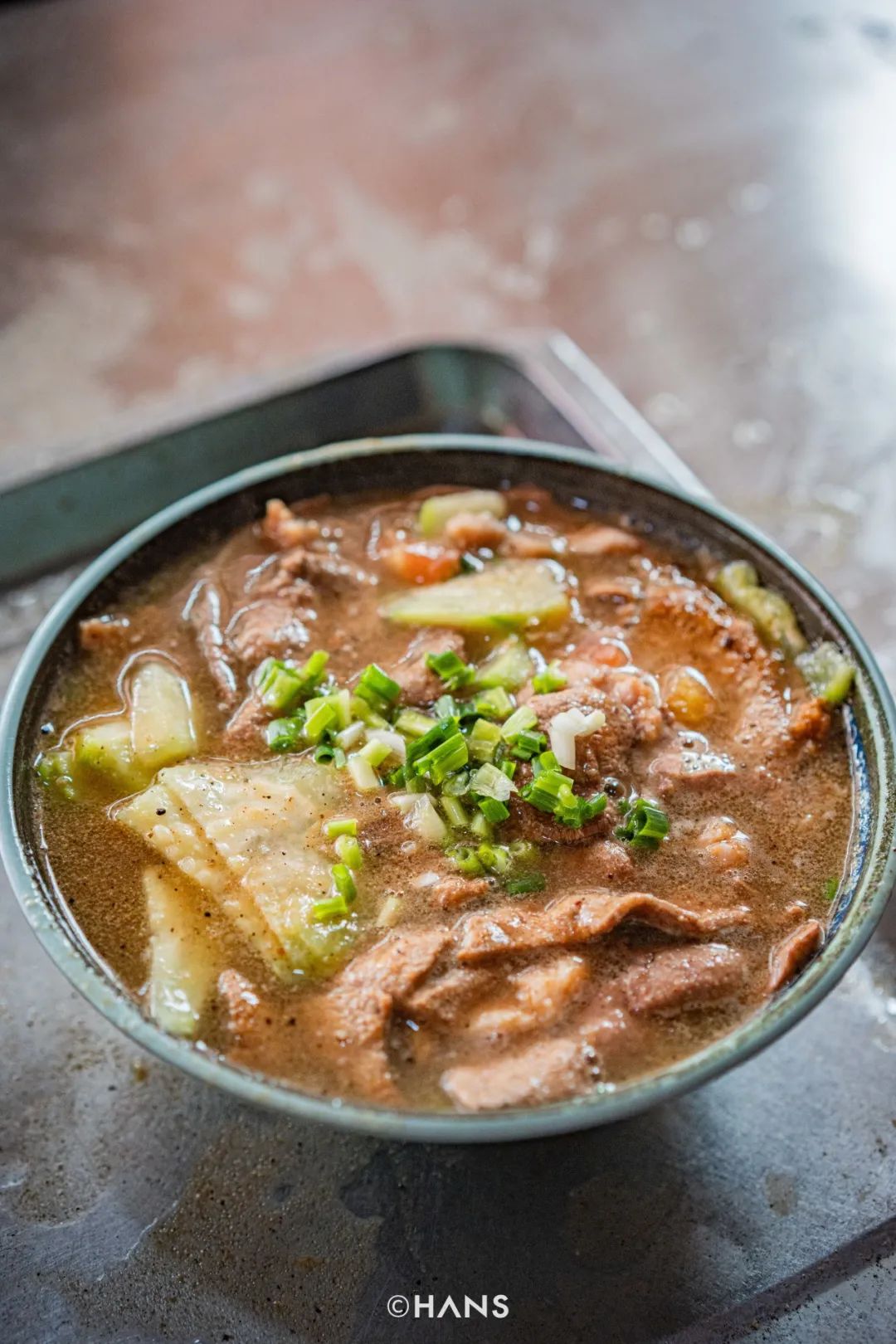 掺汤出锅,先喝汤!鲜润带着甜味回甘是初印象,微微咂摸,熟悉的黑胡椒在汤里畅游,不同的是,不像武汉黑胡椒那么辛爽直白,店家自己磨的黑胡椒更为平和,也不是码在碗底,而是和汤底同煮,鲜掉眉毛。朋友娜娜从汉川来武汉生活后,好不容易找到一家掺汤馆,老板问她要不要加辣椒,她说不用,老板还说“真是不会吃”,娜娜在心里闷着笑,她小时候吃遍汉川掺汤,就没有一家是给辣椒的,辛辣的味道,大多倚靠的就是姜和这把黑胡椒。