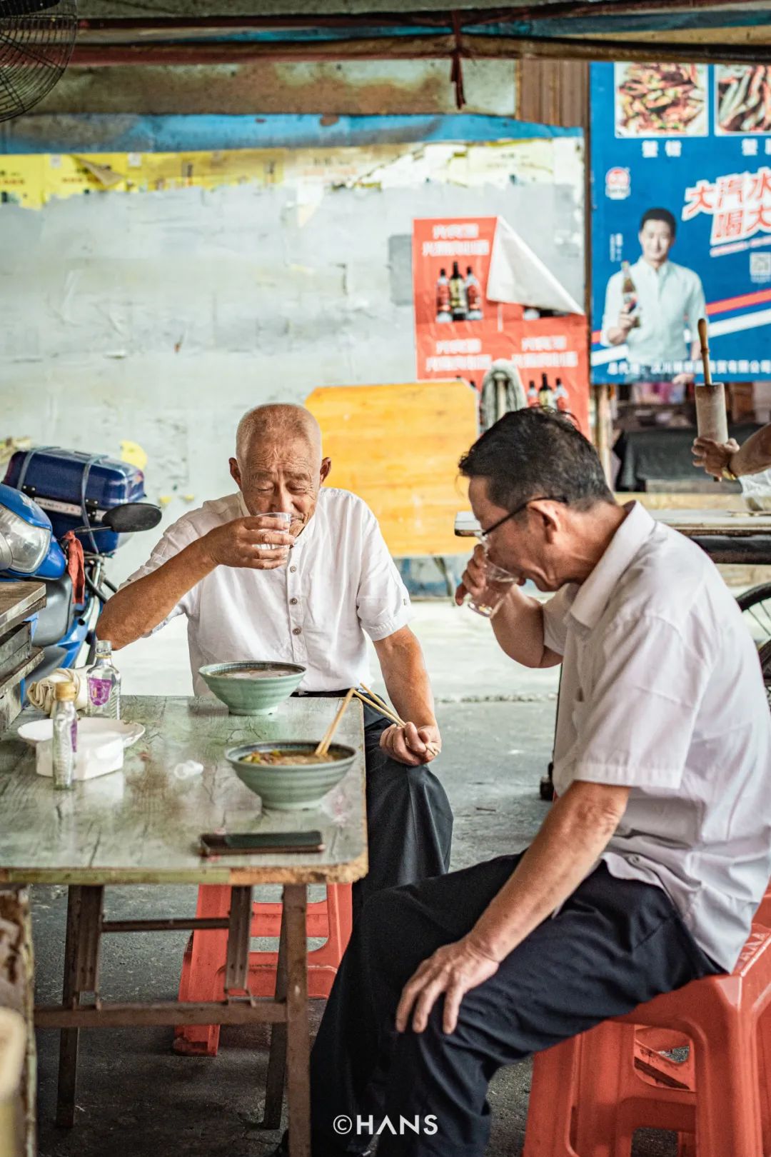汉川掺汤里的粉丝默认是手工红薯粉,细细滑滑,都已经入了肉味。平日吃多了宽粉,现在换个胃口,越嗦越带劲。而且文生家舍得给料,夹一筷子起来,都是满满的肉,快吃完时发现没有关照碗底,感叹,“肉怎么越吃越多!”好肉配好酒,天经地义。不止是荆州人早上喝早酒,江汉平原大部分地区都有这个习惯,汉川也不例外。时不时看见老哥俩心无旁骛地早酒配三鲜掺汤,九点喝酒,十点上头,笑眯了眼。