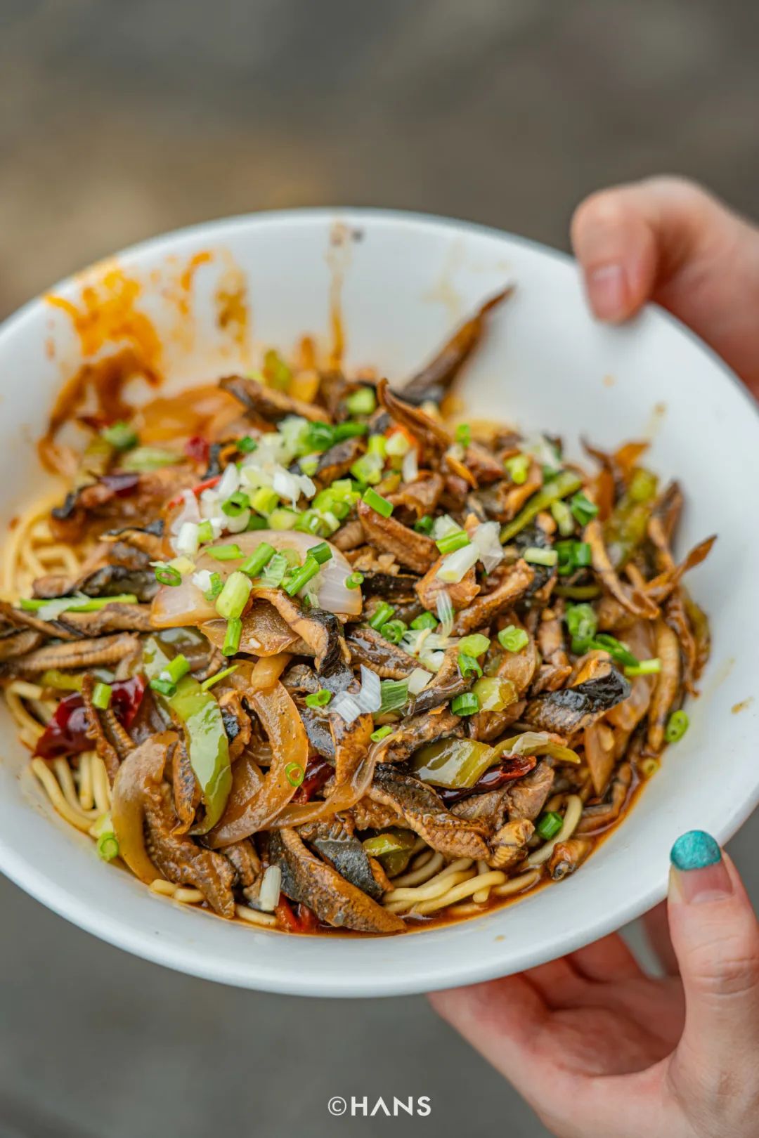 鳝鱼丝保持着鲜嫩,带着微微的醋香味,非常开胃。摄影师当场想打包一份浇头带回武汉,被老板劝阻,说是超过半个小时面会坨,没有了锅气,味道也会打折扣。